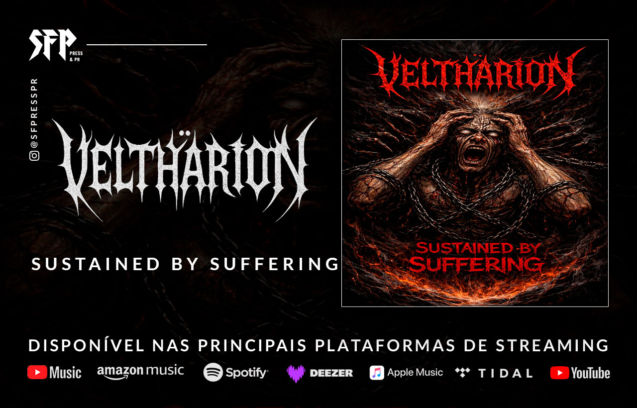 O quarteto baiano de Death/Black Metal, VELTHARION, oficializou na última sexta-feira (06/03) a chegada do single “Sustained By Suffering” em todas as plataformas de streaming. O lançamento, capitaneado pelo selo Sangue Frio Records, marca a estreia profissional da banda nos serviços digitais e estabelece um novo padrão de agressividade para o Metal extremo nacional em 2026.Composta por veteranos da cena, o VELTHARION apresenta uma sonoridade densa que equilibra a rispidez das raízes do gênero com uma produção técnica de nível internacional. A faixa serve como o primeiro cartão de visitas do álbum de estreia do grupo, previsto para ser entregue ainda neste semestre, consolidando a união entre lírica visceral e execução técnica refinada.Confira agora "Sustained By Suffering" e mergulhe no caos sonoro do VELTHARION através do link oficial: https://li.sten.to/VELTHARION_